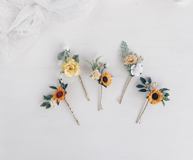 Hair Clip Flower Hair Pins Set Of 5 Hair Clips Sunflower Hair Pins Wedding Shop Serenity Hair Accessories Pinkoi