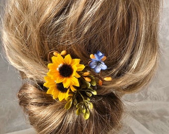 Flower Hair Pins With Sunflowers Wedding Flower Hair Pins Etsy Uk